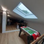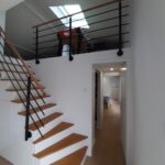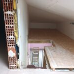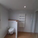 Sur ce projet, mes clients souhaitaient revoir l’agencement de leur suite parentale qui n’en était pas vraiment une puisque l’escalier qui permettait d’accéder à l’étage était entre la salle de bain et la chambre. Nous avons donc tout déposé (salle de bain/escalier) pour tout remettre dans le “bon ordre”. Pour cela, il a fallu boucher la trémie pour en ouvrir une autre et ainsi créer un autre accès à l’étage. Une partie de l’étage était déjà aménagée, nous avons ouvert les cloisons restantes pour accéder au reste des combles et ainsi créer un grand plateau bureau/salle de jeu/chambre d’amis/rangements…à l’étage.