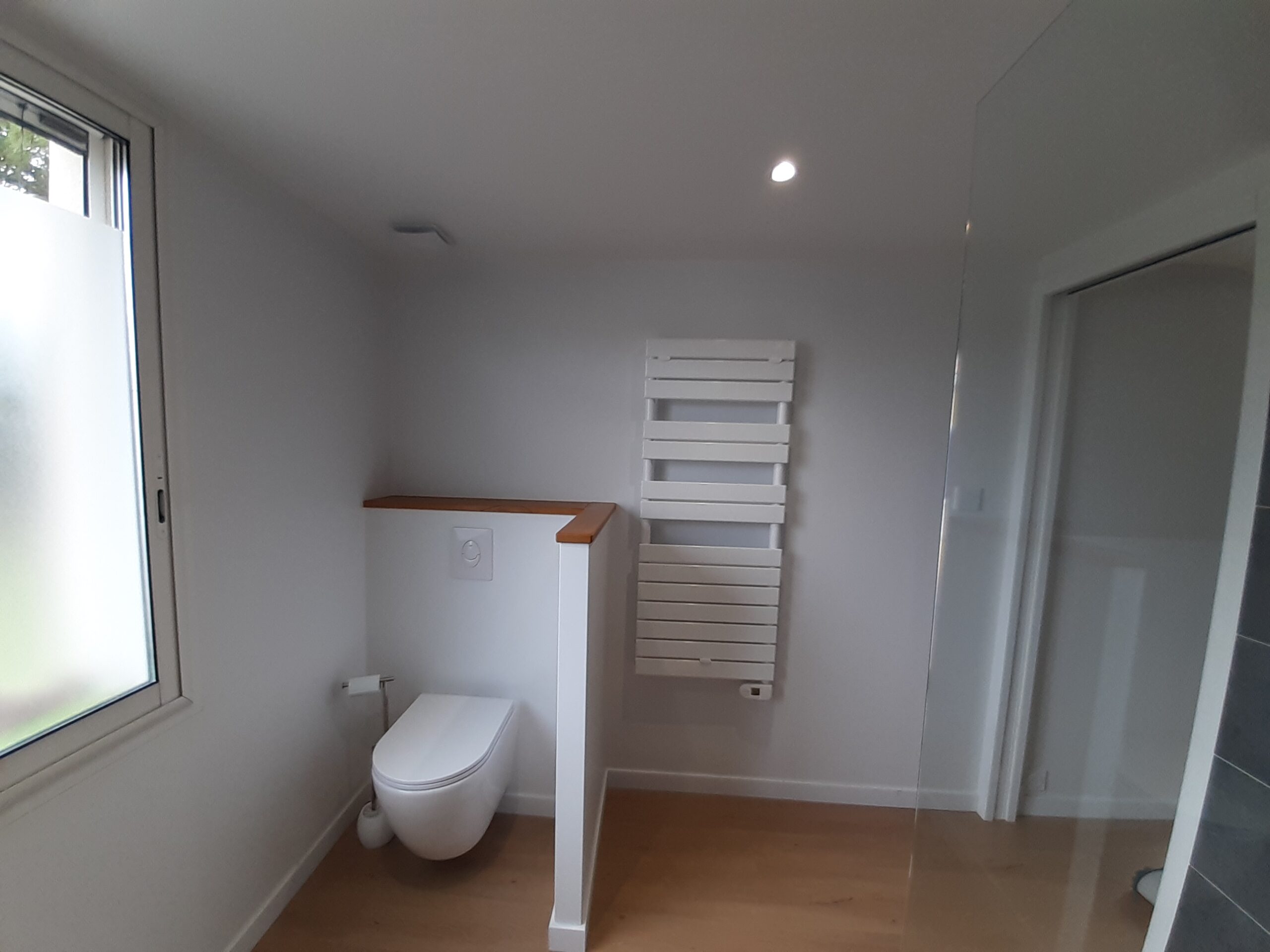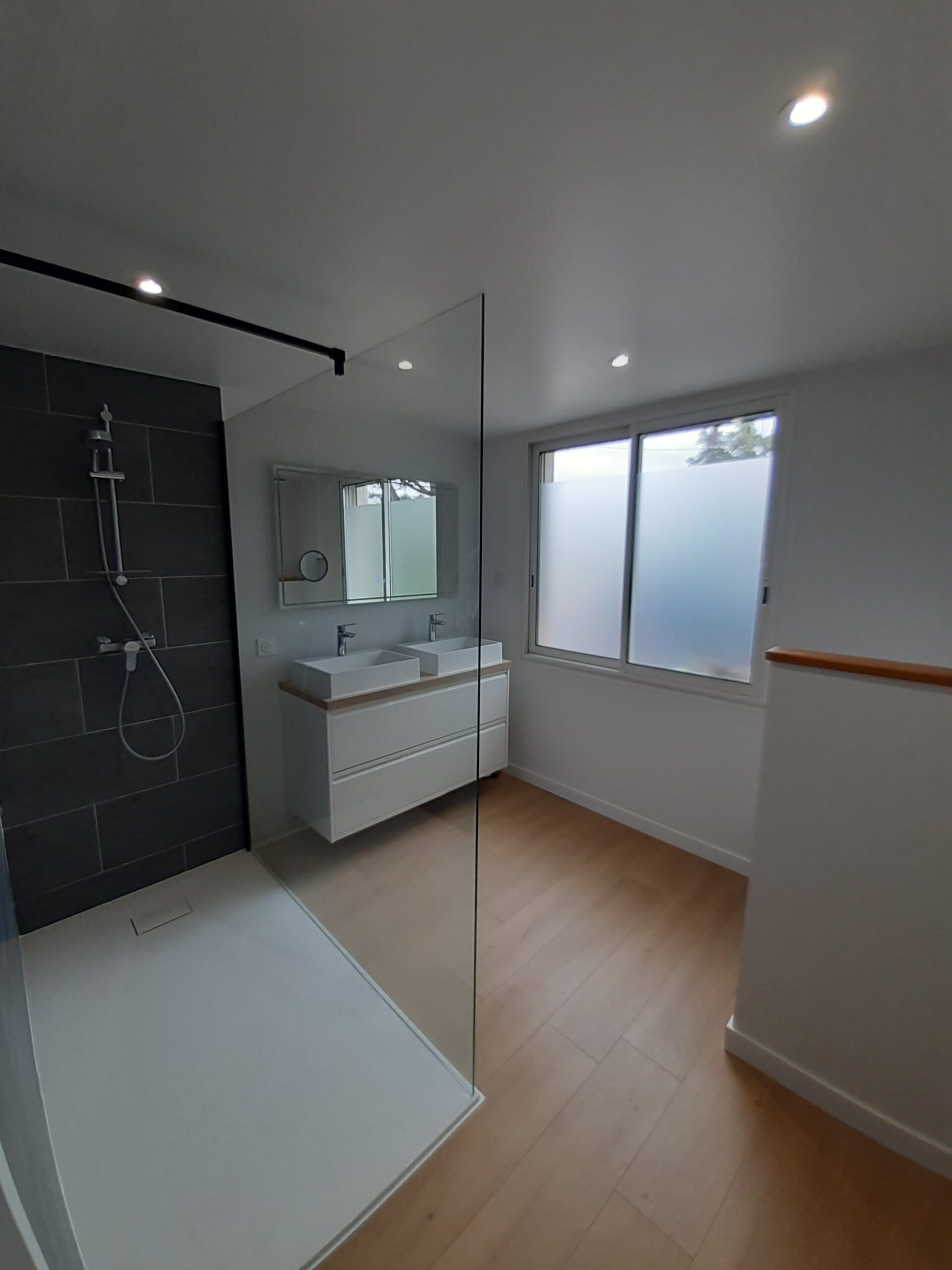 Pour ce qui est de la suite parentale, la salle de bain a été déplacée dans l’ancienne chambre afin d’avoir un espace cohérent, fonctionnel et pertinent.